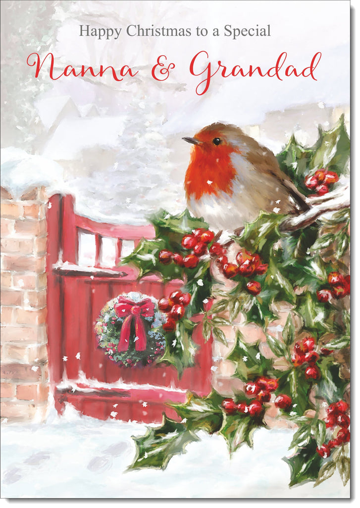 Nanna & Grandad Christmas Card Robin on Holly Tree