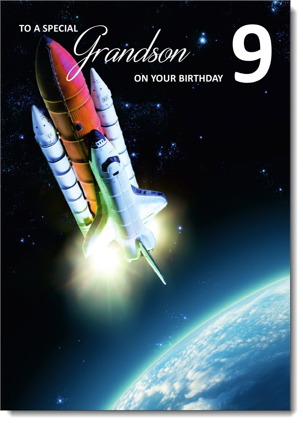 Grandson 9th Birthday Card Age 9 Rocket Ship in Space