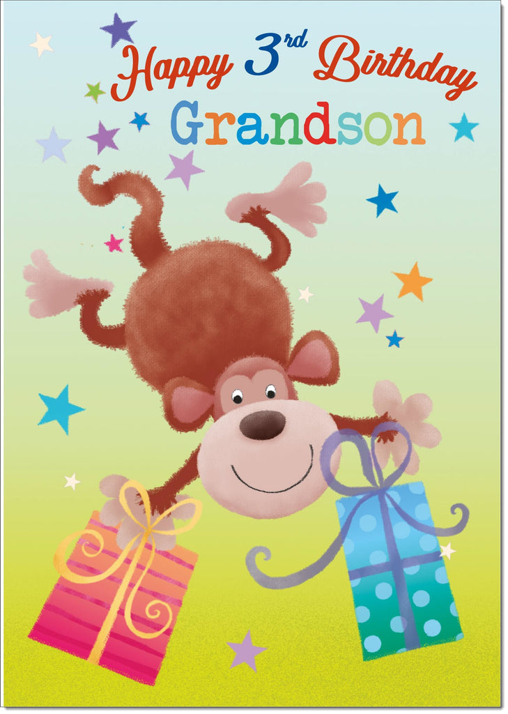 Grandson 3rd Birthday Card Age 3 Monkey