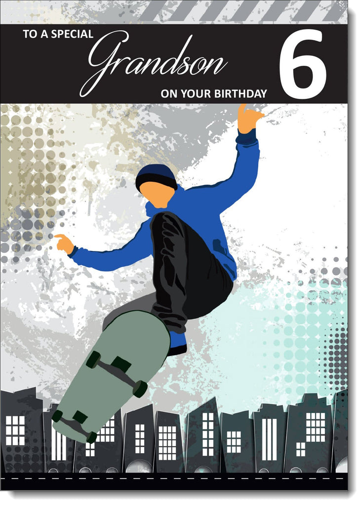 Grandson 6th Birthday Card Age 6 Skateboarding