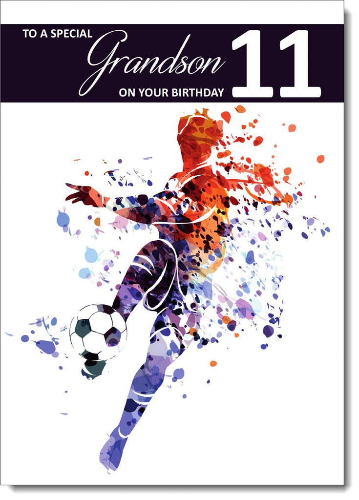 Grandson 11th Birthday Card Age 11 Footballer's Trophy
