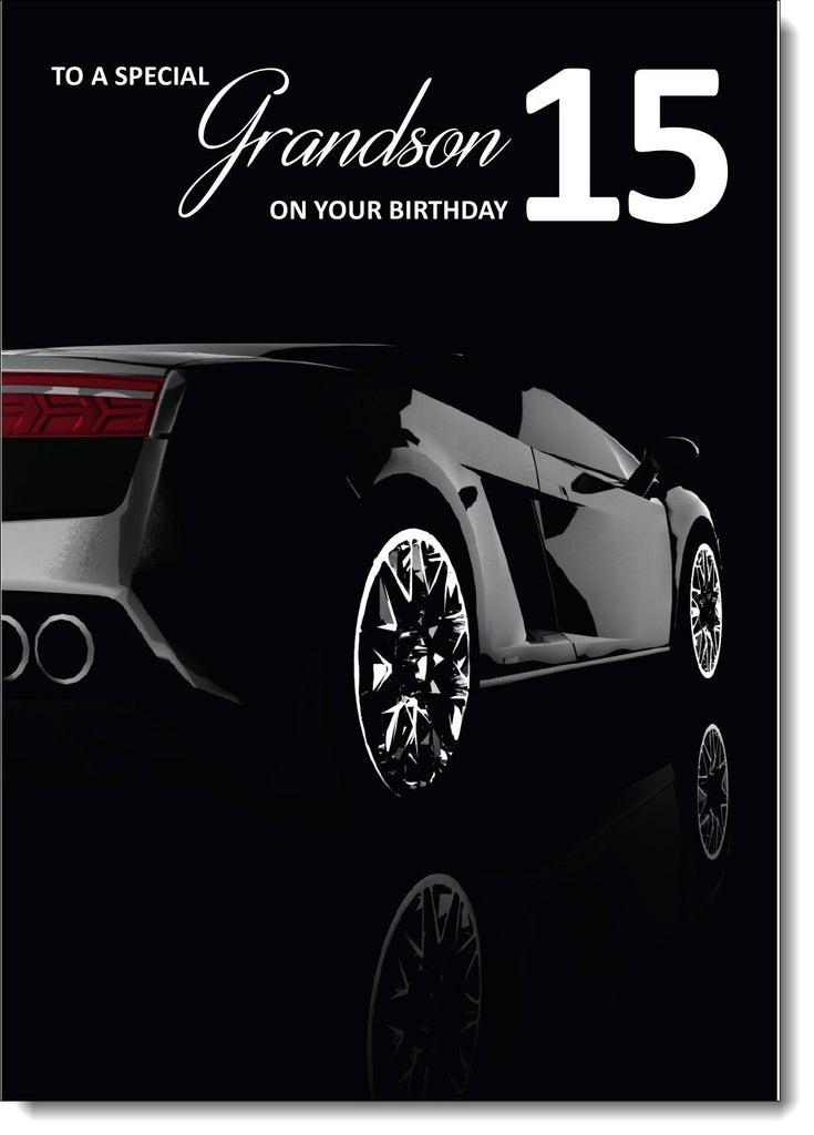 Grandson 15th Birthday Card Age 15 Black Lamborghini