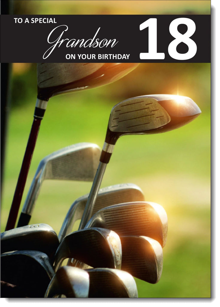 Grandson 18th Birthday Card Age 18 Golf Clubs
