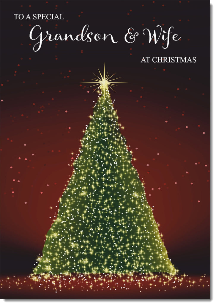 Grandson & Wife Christmas Card Christmas Tree and Parcels
