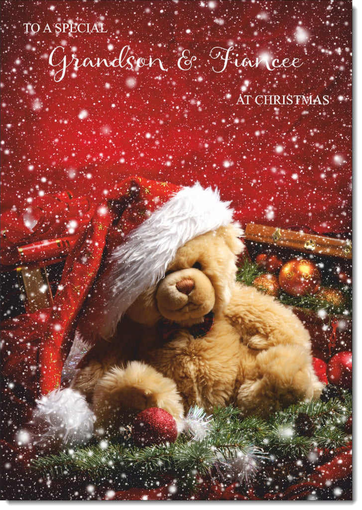 Grandson & Fiancee Christmas Card Teddy Bear in Santa Hat