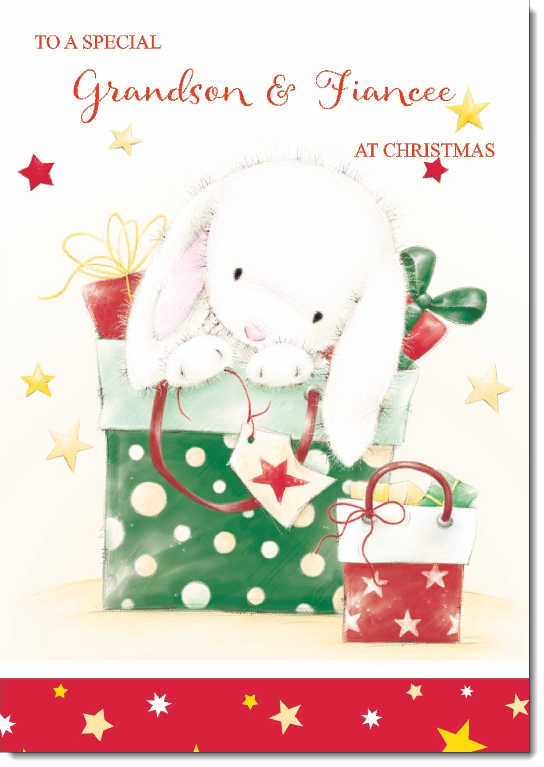 Grandson & Fiancee Christmas Card Cute Rabbit with Parcels