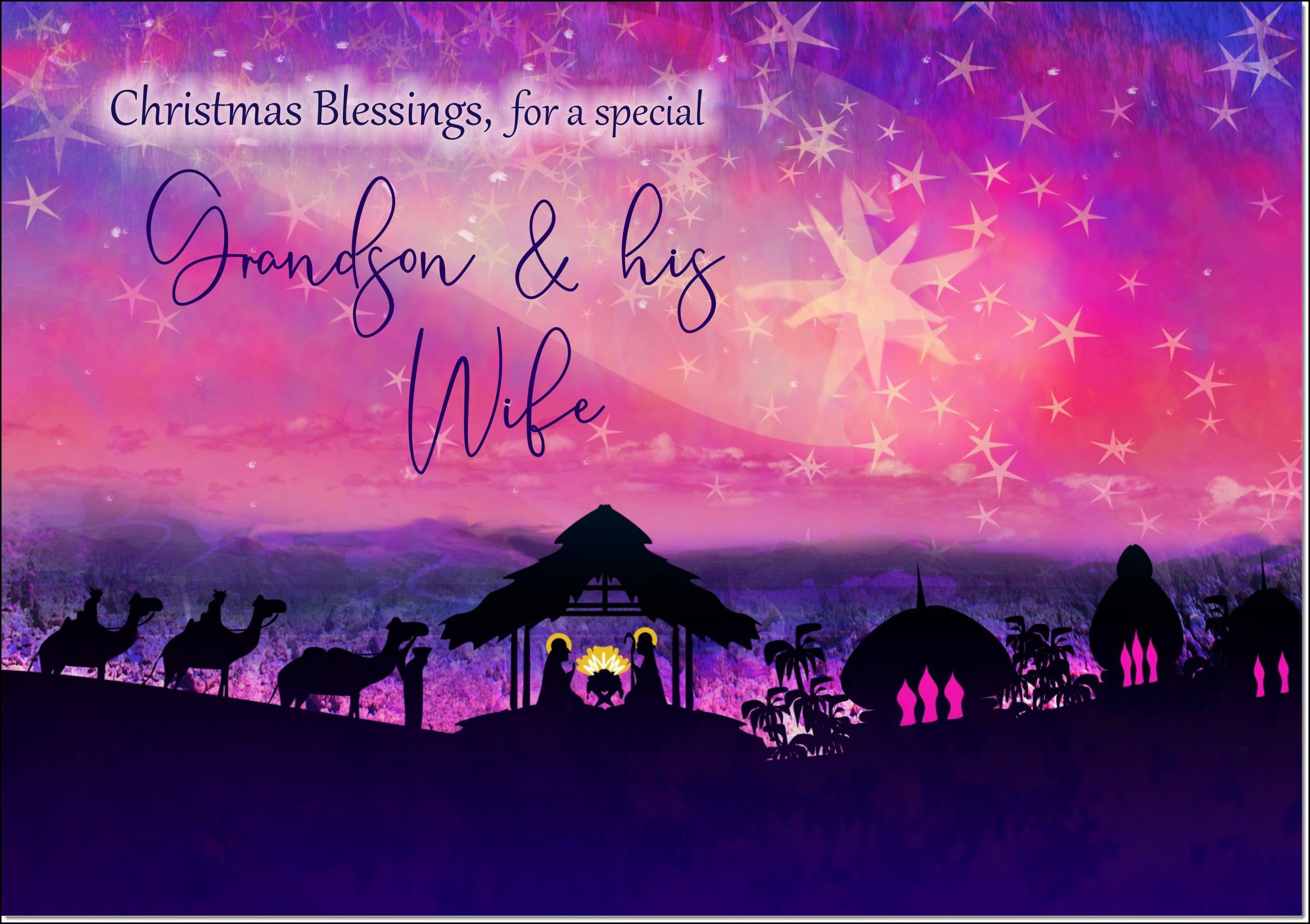 Grandson & Wife Christmas Card Nativity Scene Evening Watercolour