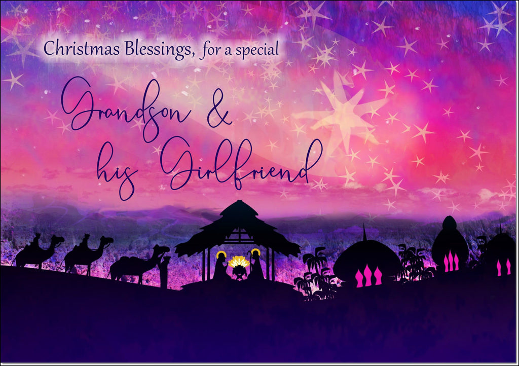 Grandson & Girlfriend Christmas Card Nativity Scene Evening Watercolour