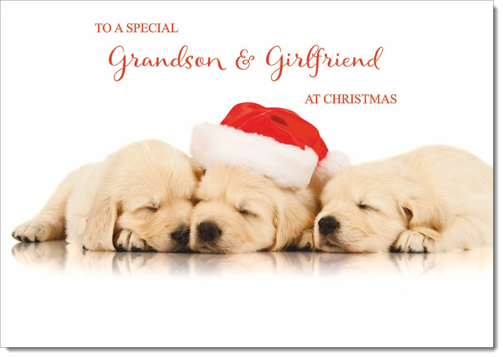 Grandson & Girlfriend Christmas Card Christmas Golden Retriever Puppies