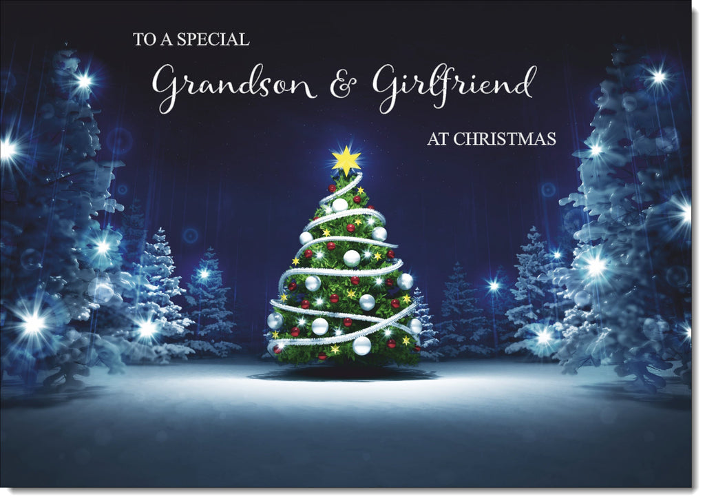 Grandson & Girlfriend Christmas Card Christmas Tree Lights in Dark Sky