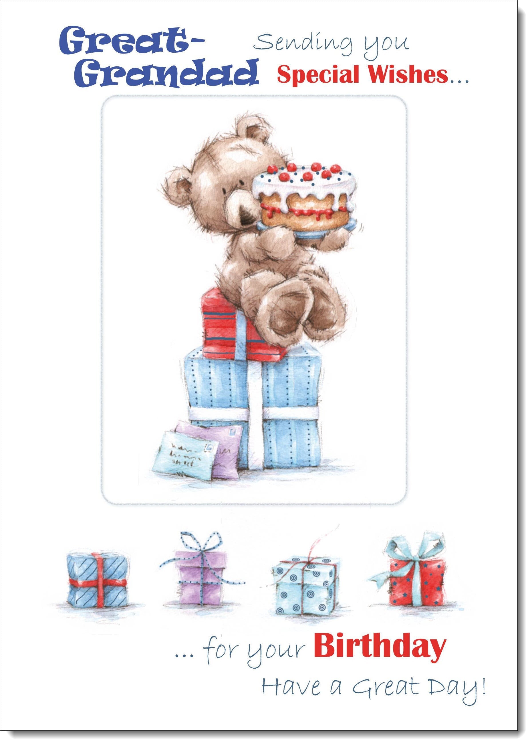 Great Grandad Birthday Card Cute Bear with Cake