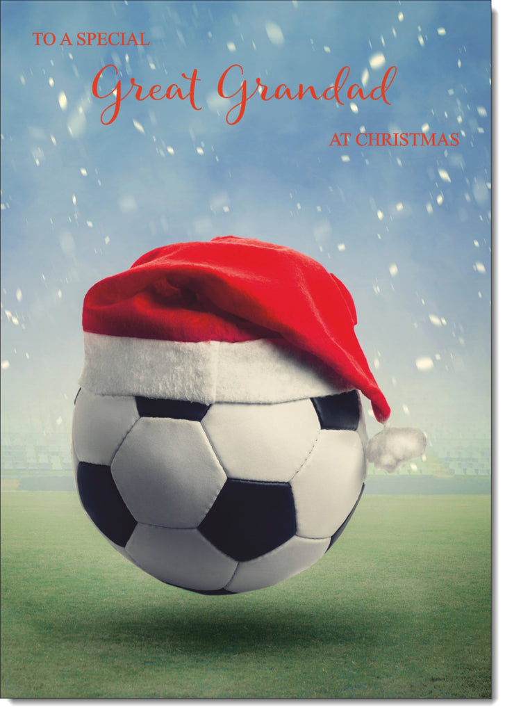 Great Grandad Christmas Card Santa Hat Football Blue