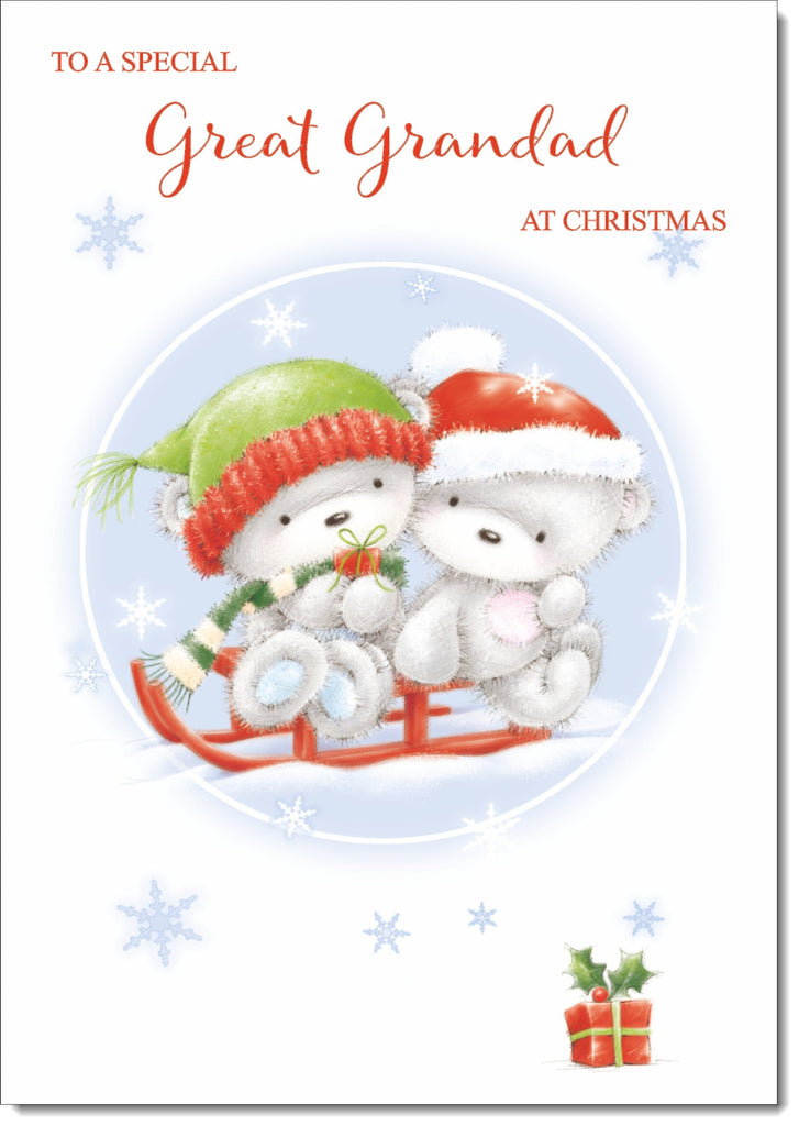 Great Grandad Christmas Card Cute Bear in Christmas Parcel