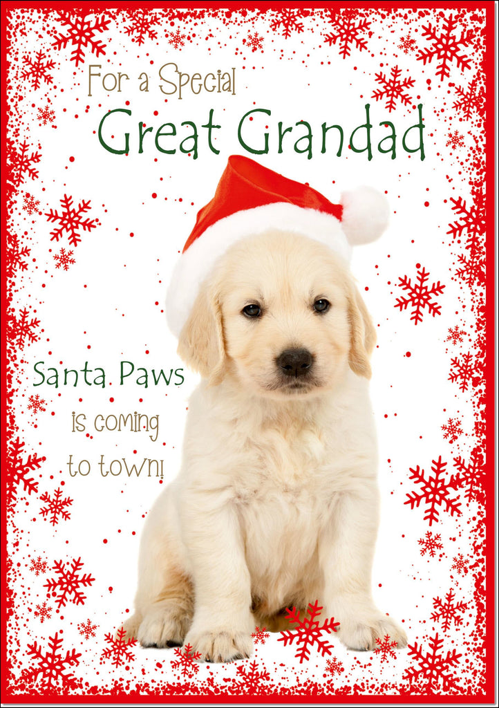 Great Grandad Christmas Card Cute Santa Paws Puppy Dog Pet