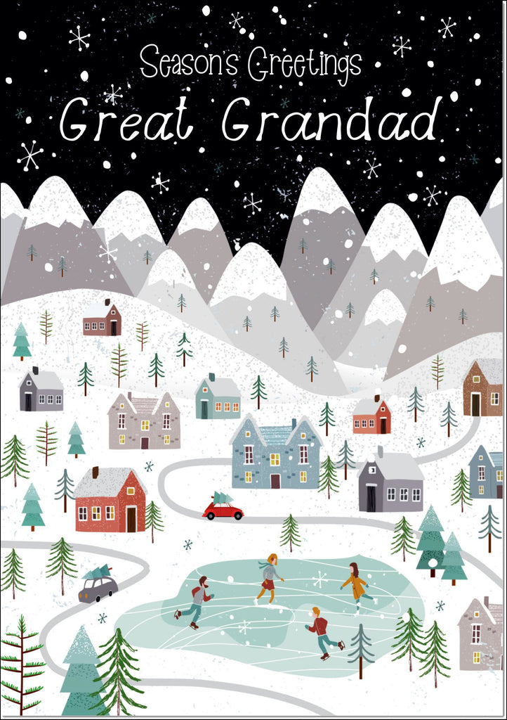 Great Grandad Christmas Card Mountain Scene In Snowy Village