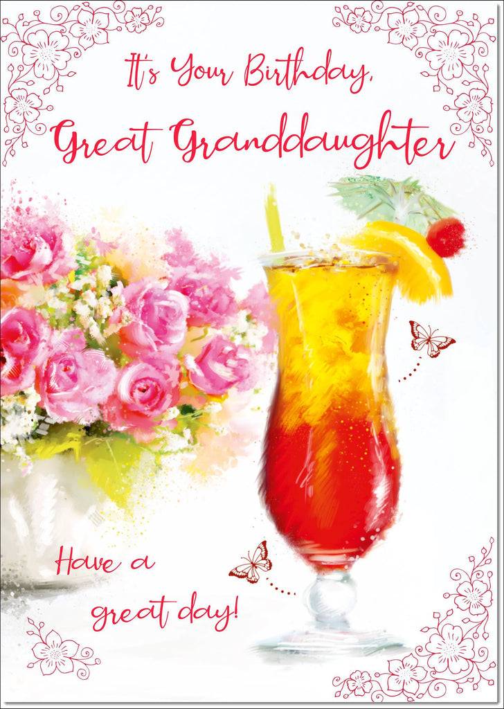 Great Granddaughter Birthday Card Cocktails and Butterflies