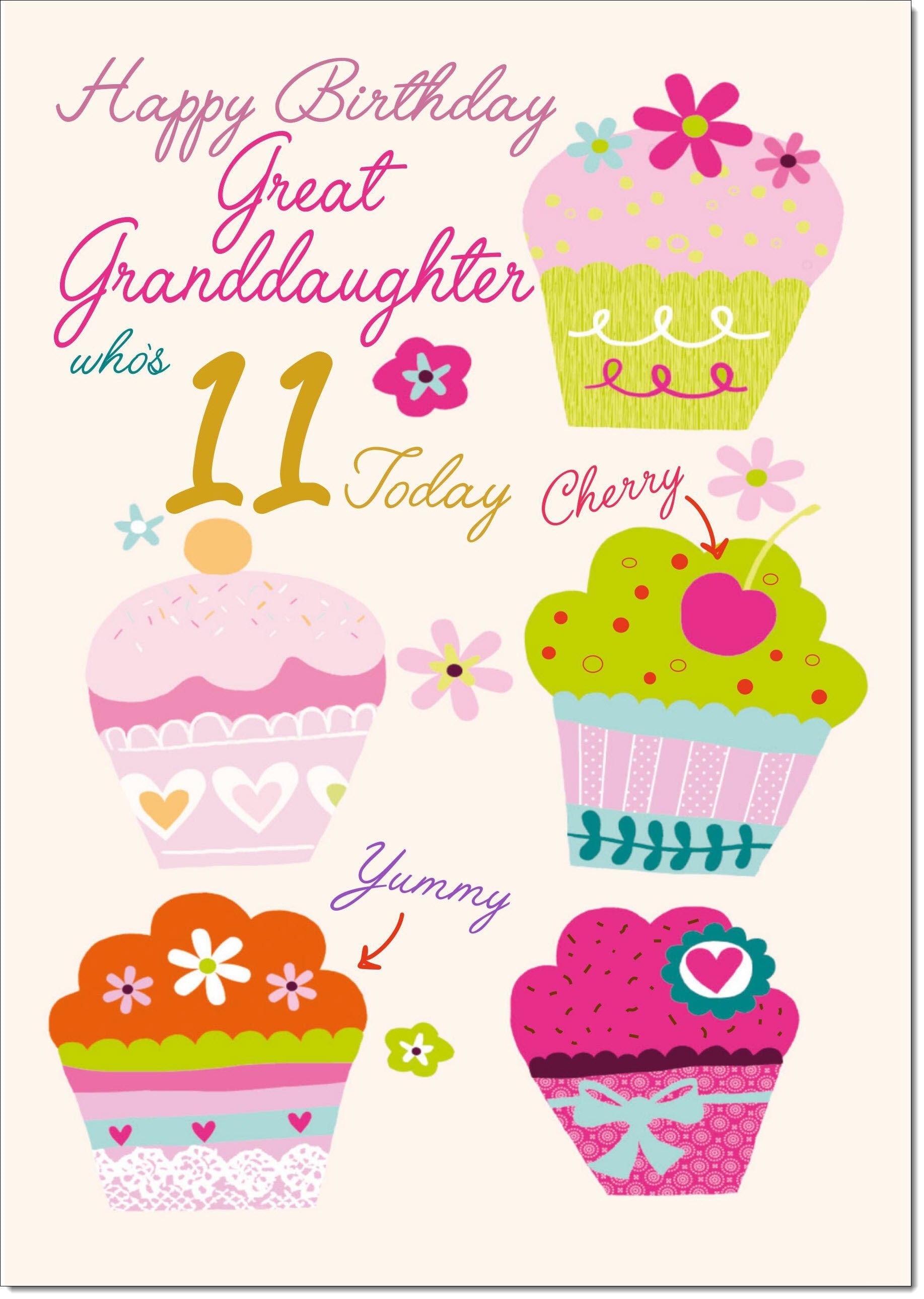 Great Granddaughter 11th Birthday Card Age 11 Bright Cupcakes