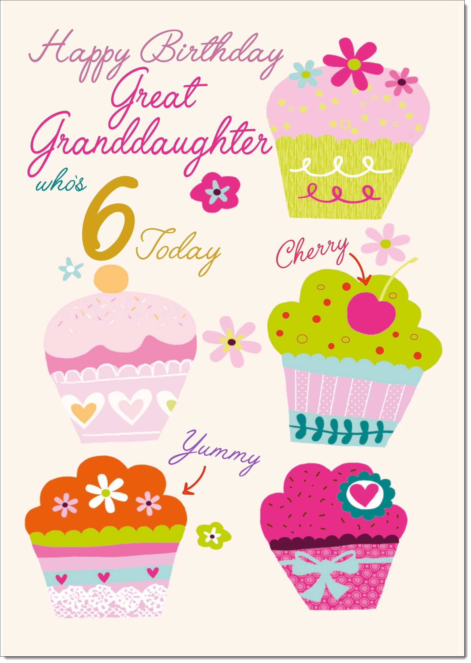 Great Granddaughter 6th Birthday Card Age 6 Bright Cupcakes