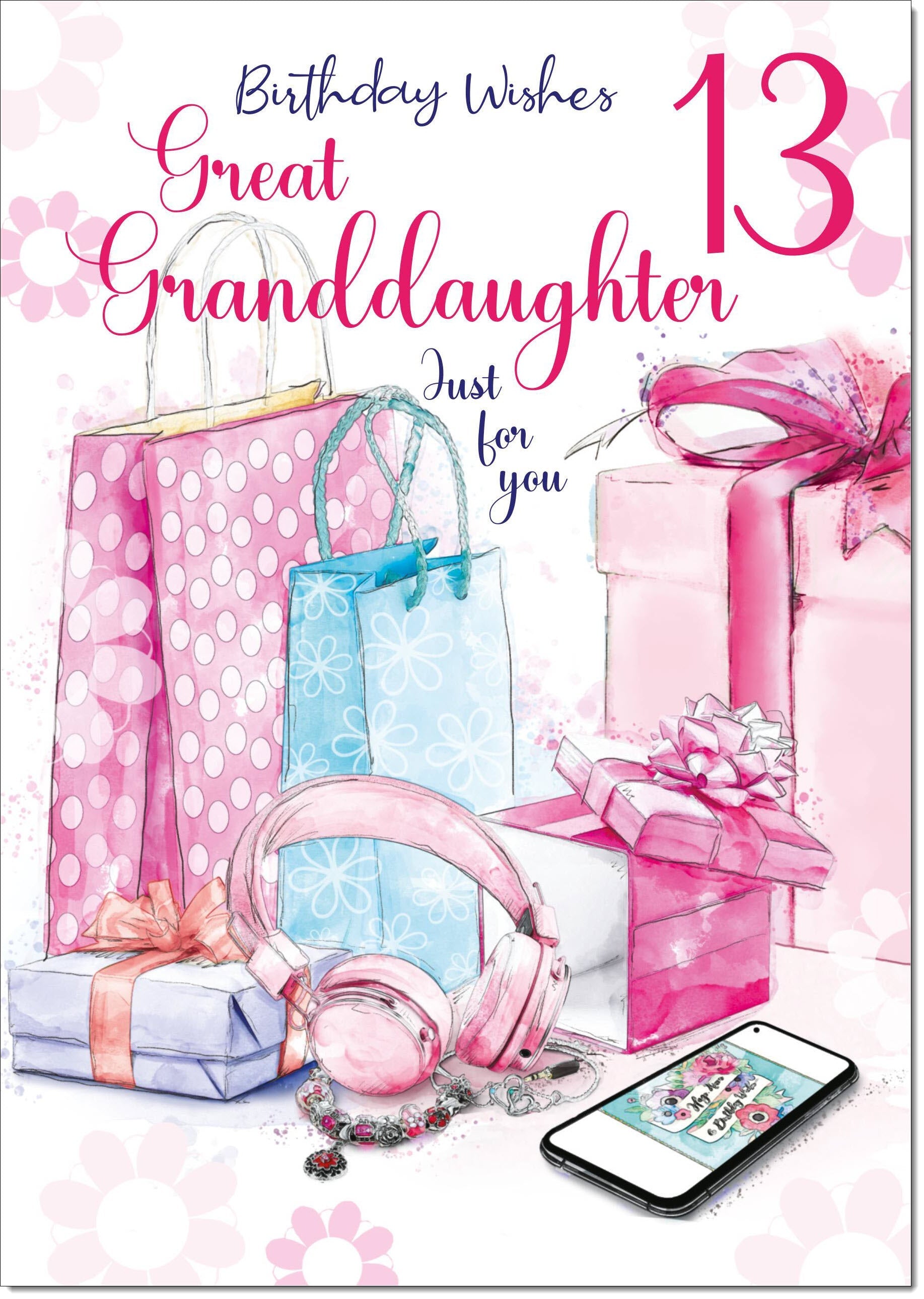 Great Granddaughter 13th Birthday Card Age 13 Present Pile