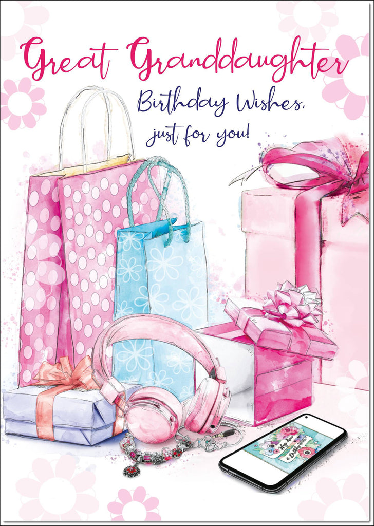 Great Granddaughter Birthday Card Dressing Table Bouquet