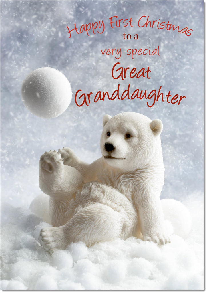 Great Granddaughters 1st Christmas Card Polar Bear and Snowball