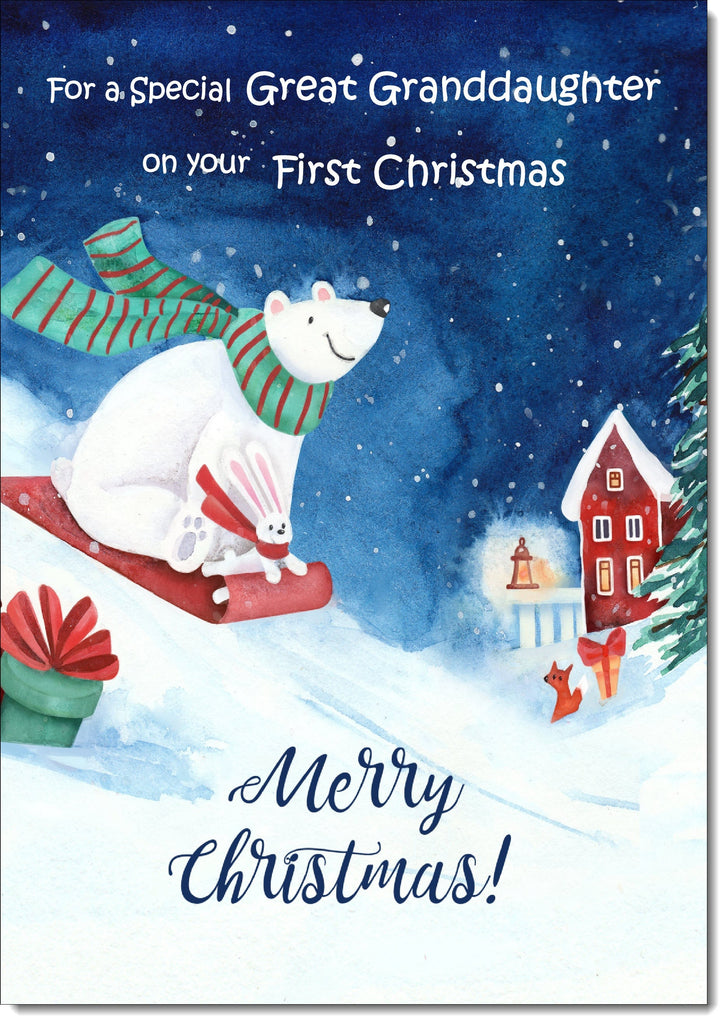 Great Granddaughters 1st Christmas Card Polar Bear on Sled