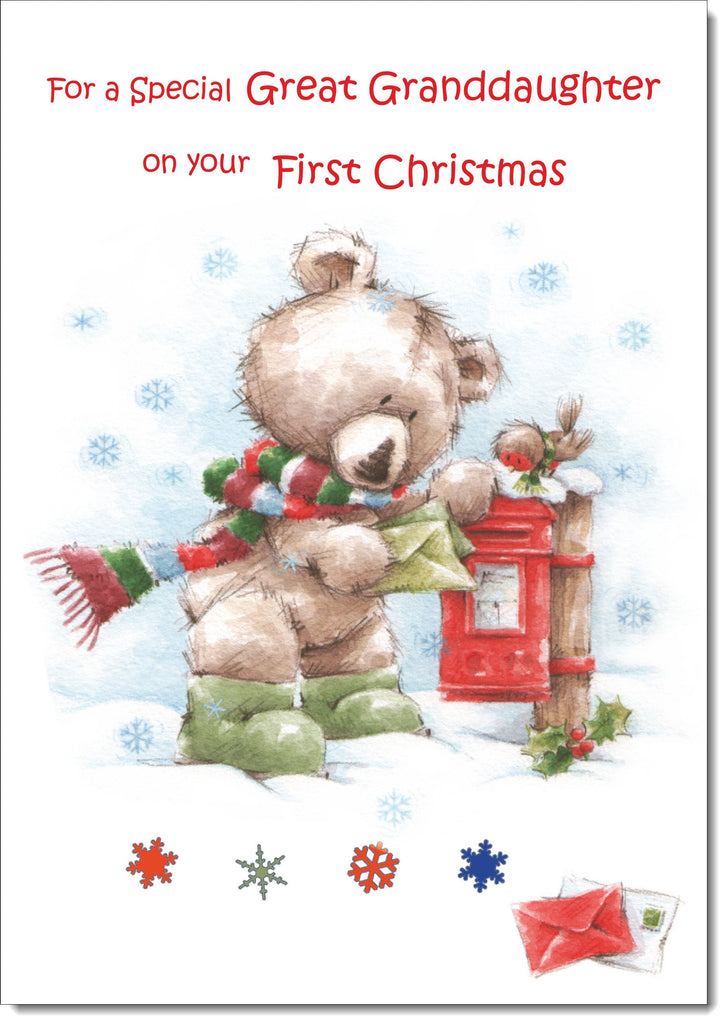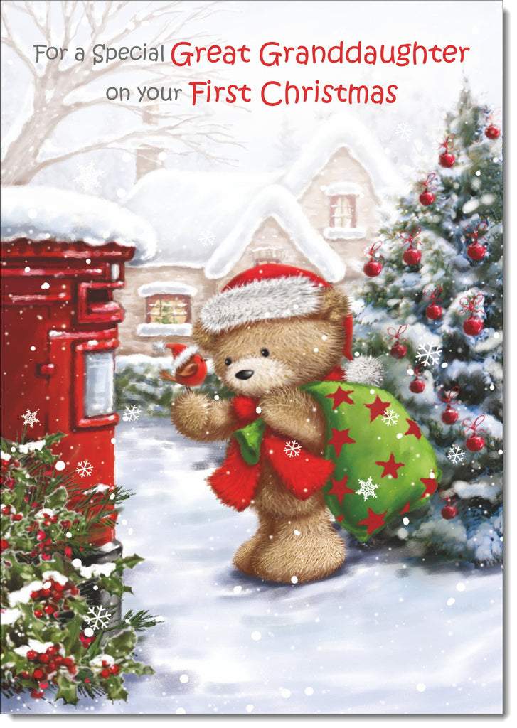 Great Granddaughters 1st Christmas Card Cute Bear at Post Box