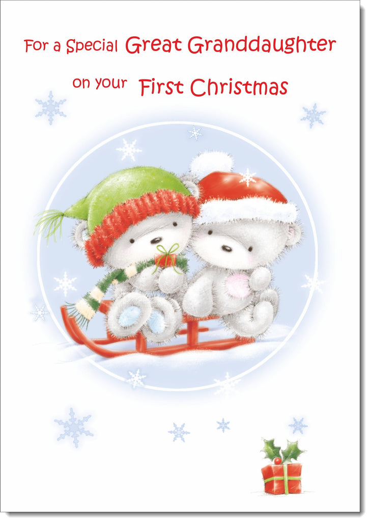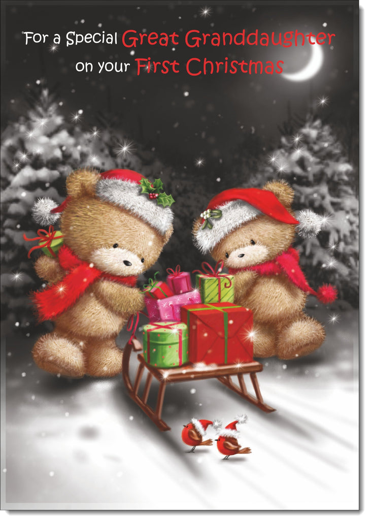 Great Granddaughters 1st Christmas Card Cute Bears on Sled