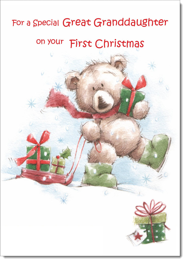 Great Granddaughters 1st Christmas Card Cute Bear with Sled