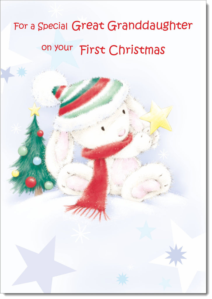 Great Granddaughters 1st Christmas Card Cute Rabbit with Star