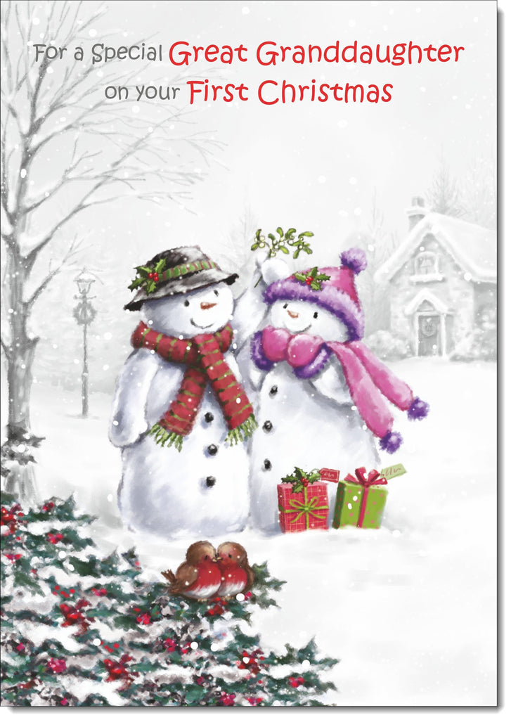 Great Granddaughters 1st Christmas Card Snowman Couple