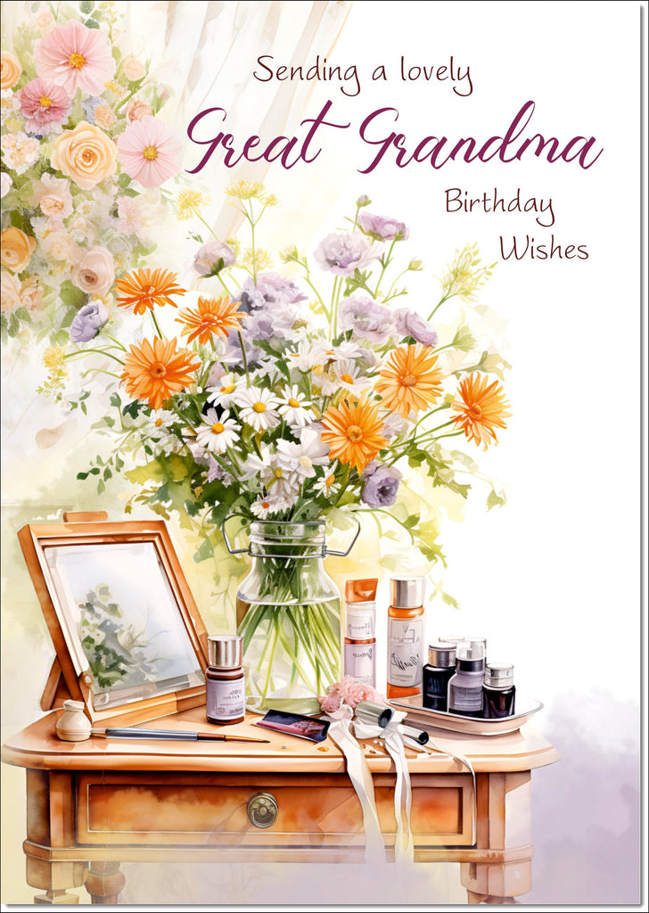 Great Grandma Birthday Card Dressing Table Bouquet