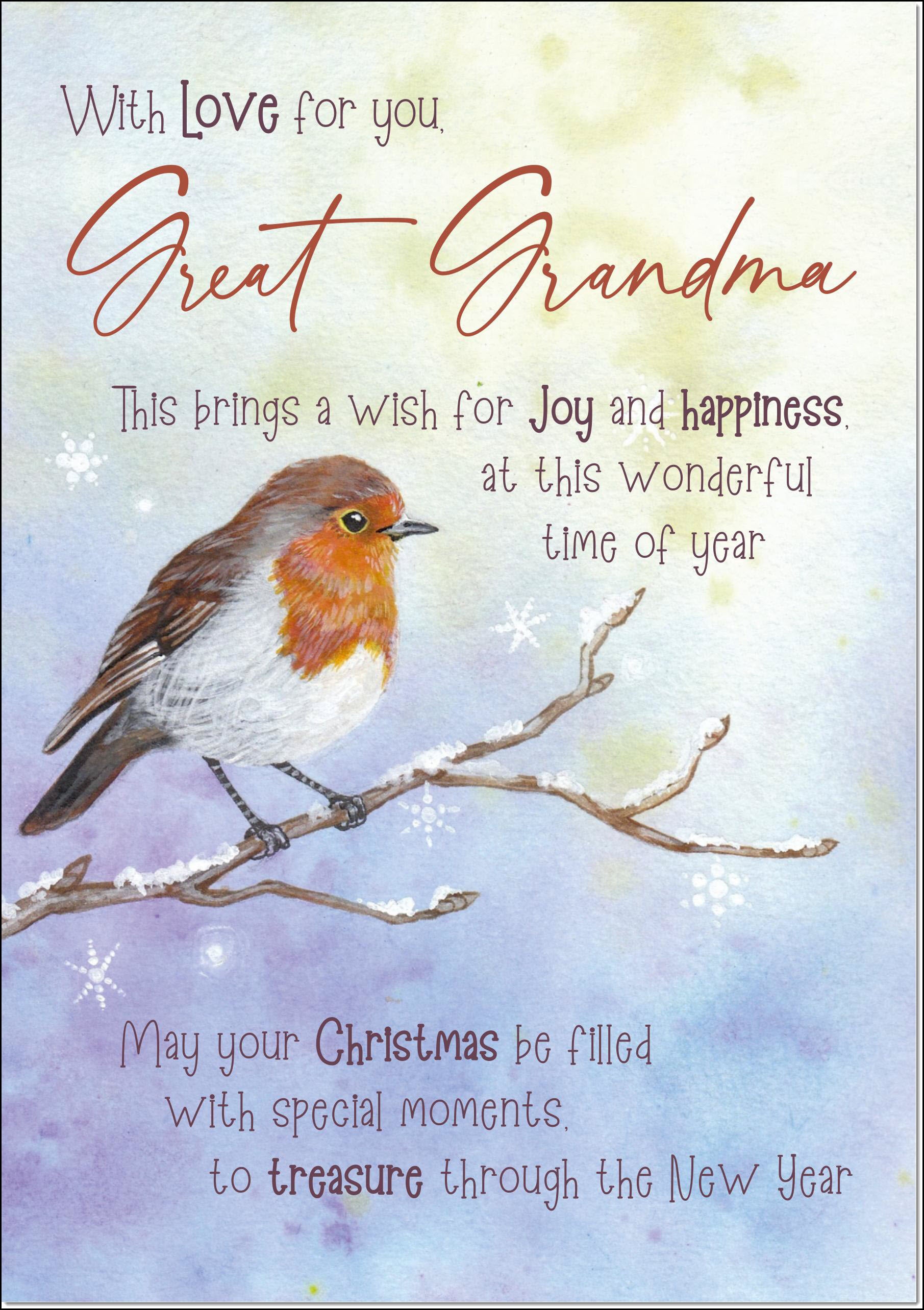 Great Grandma Christmas Card Watercolour Robin In The Frost