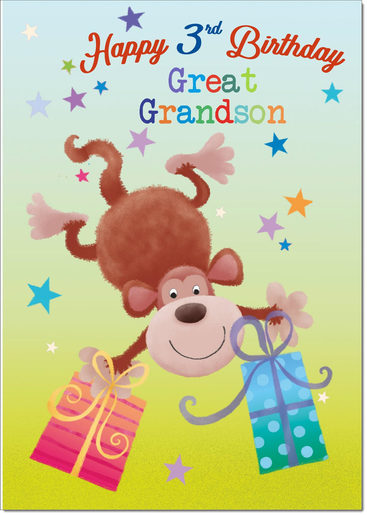 Great Grandson 3rd Birthday Card Age 3 Monkey