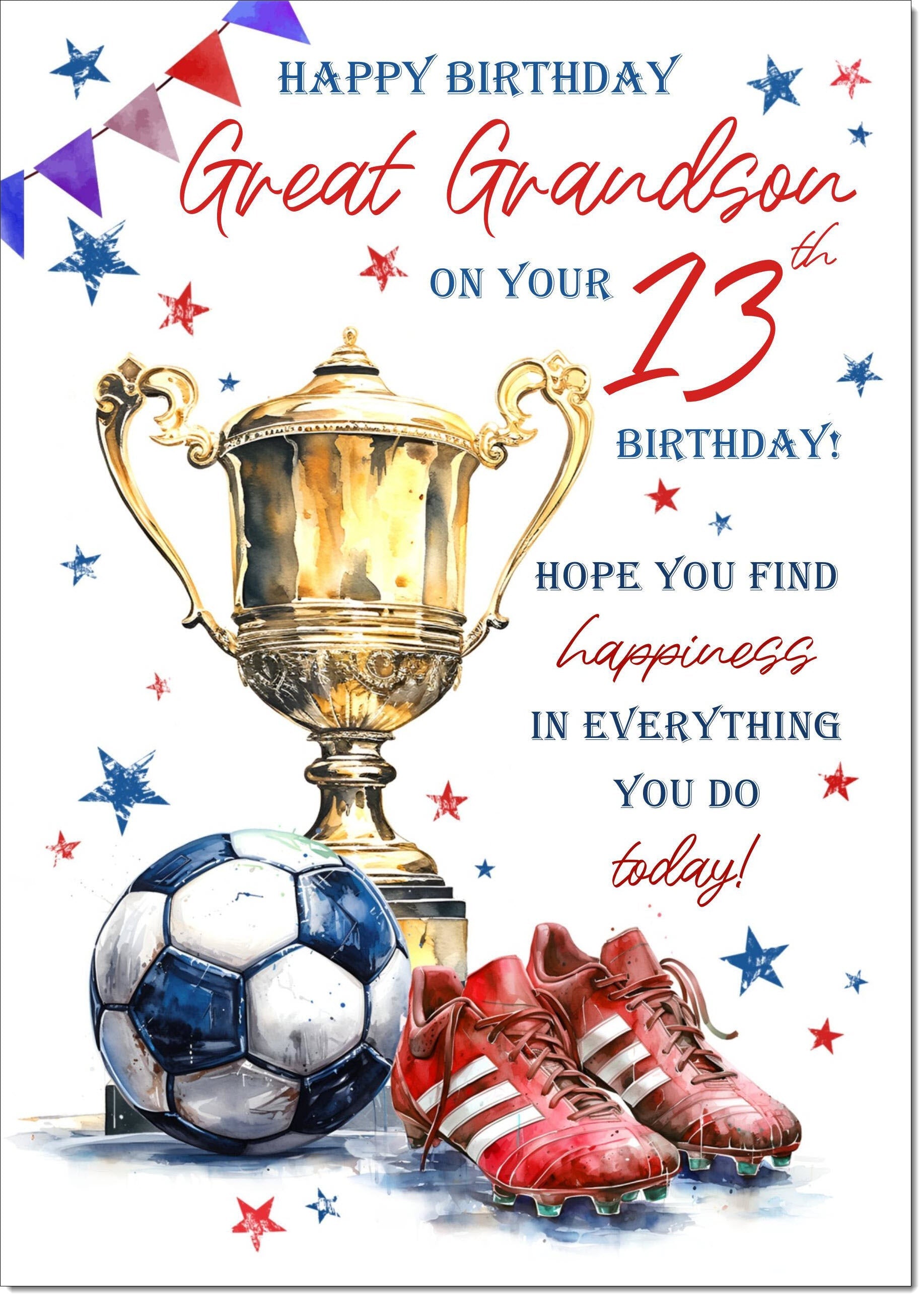 Great Grandson 13th Birthday Card Age 13 Footballer's Trophy