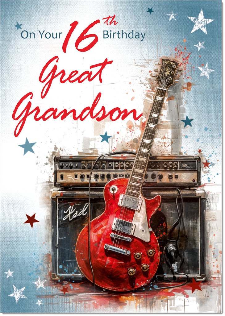 Great Grandson 16th Birthday Card Age 16 Guitar