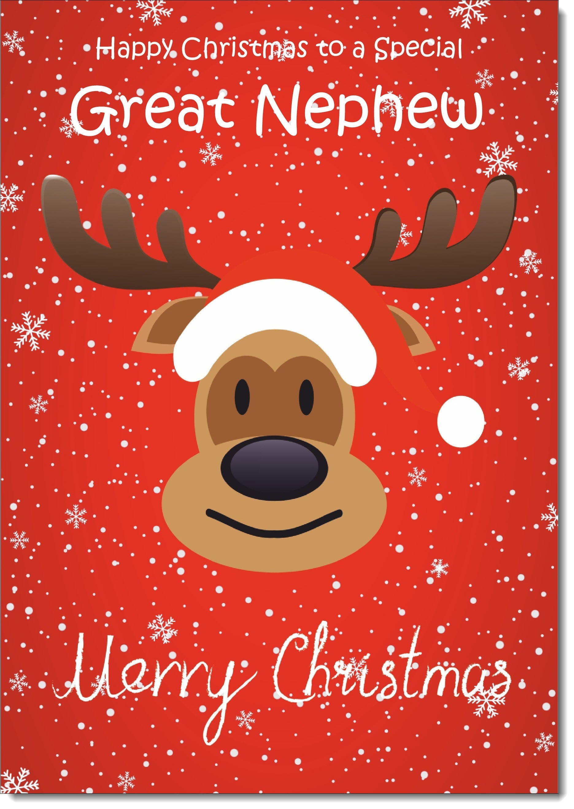 Great Nephew Christmas Card Rudolph on Red Background