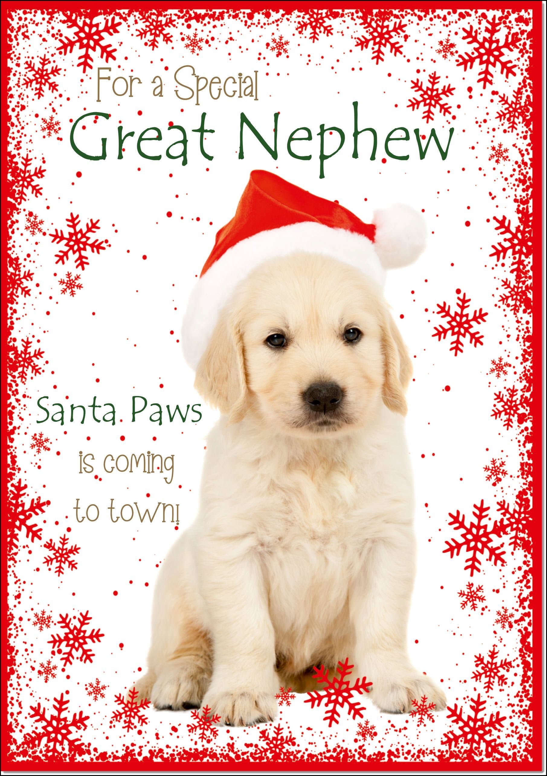 Great Nephew Christmas Card Cute Santa Paws Puppy Dog Pet