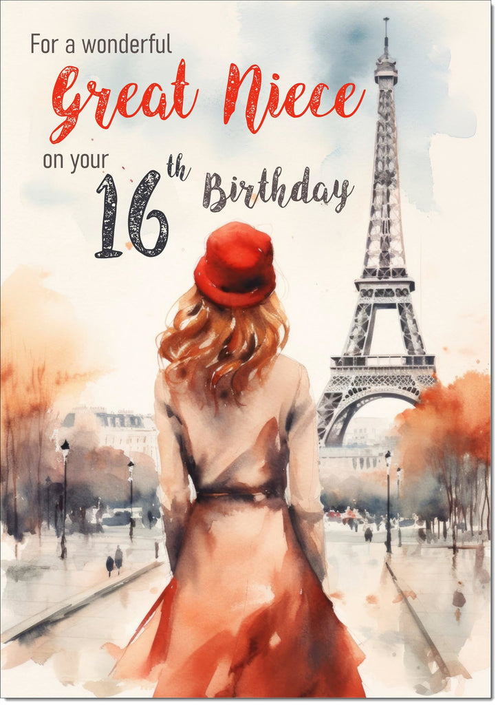 Great Niece 16th Birthday Card Age 16 Paris, Eiffel Tower
