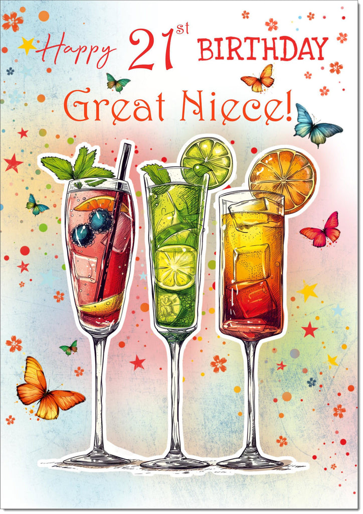 Great Niece 21st Birthday Card Age 21 Cocktails and Butterflies