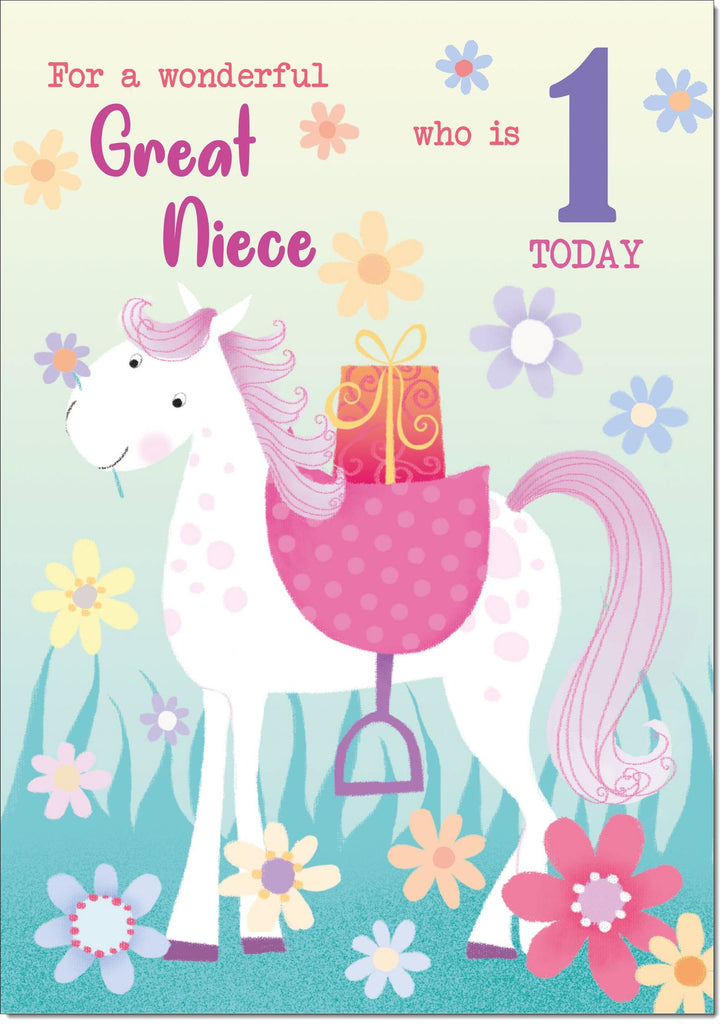 Great Niece 1st Birthday Card Age 1 Colouring Unicorn Horse