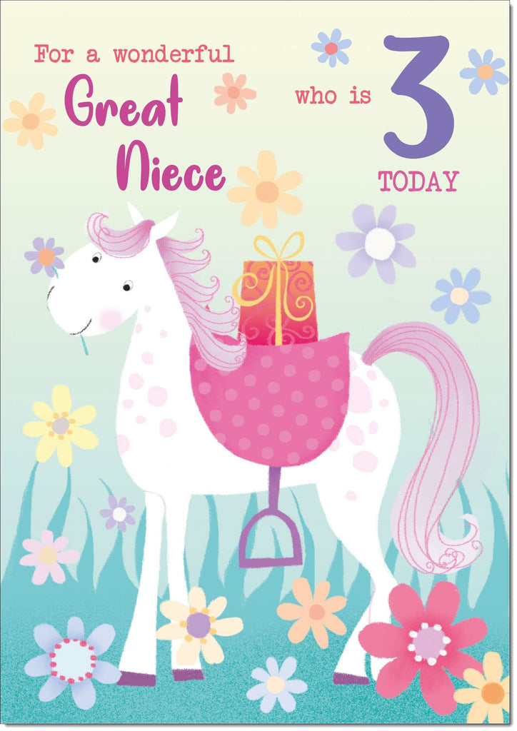Great Niece 3rd Birthday Card Age 3 Colouring Unicorn Horse
