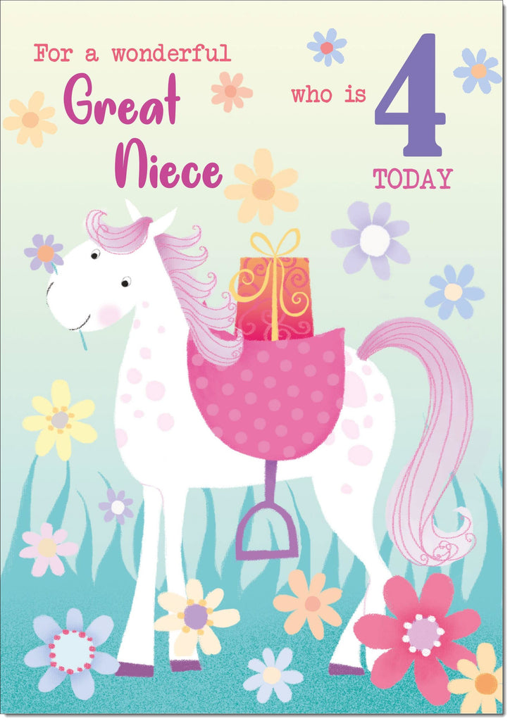 Great Niece 4th Birthday Card Age 4 Colouring Unicorn Horse