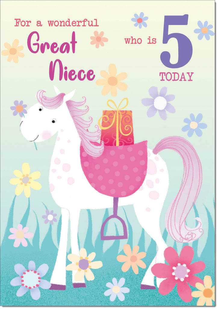 Great Niece 5th Birthday Card Age 5 Colouring Unicorn Horse