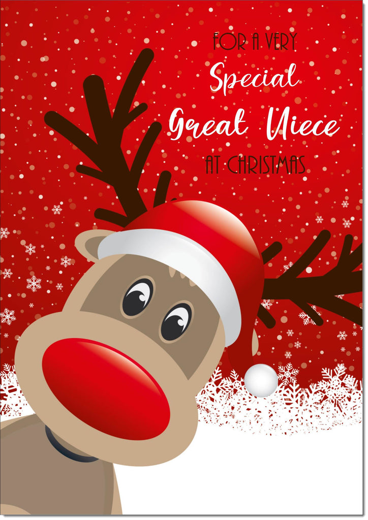 Great Niece Christmas Card Rudolph on Red Background
