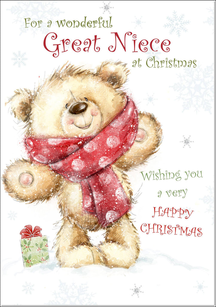 Great Niece Christmas Card Teddy Bear With Red Scarf