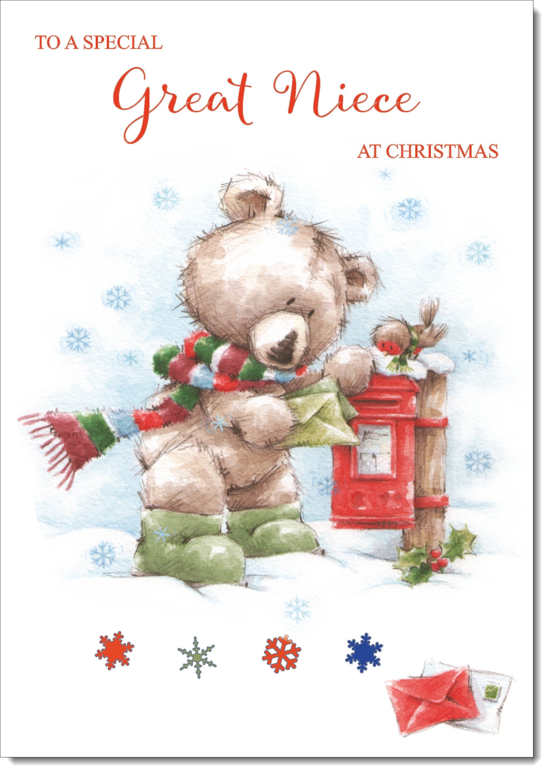 Great Niece Christmas Card Cute Bear at Post Box