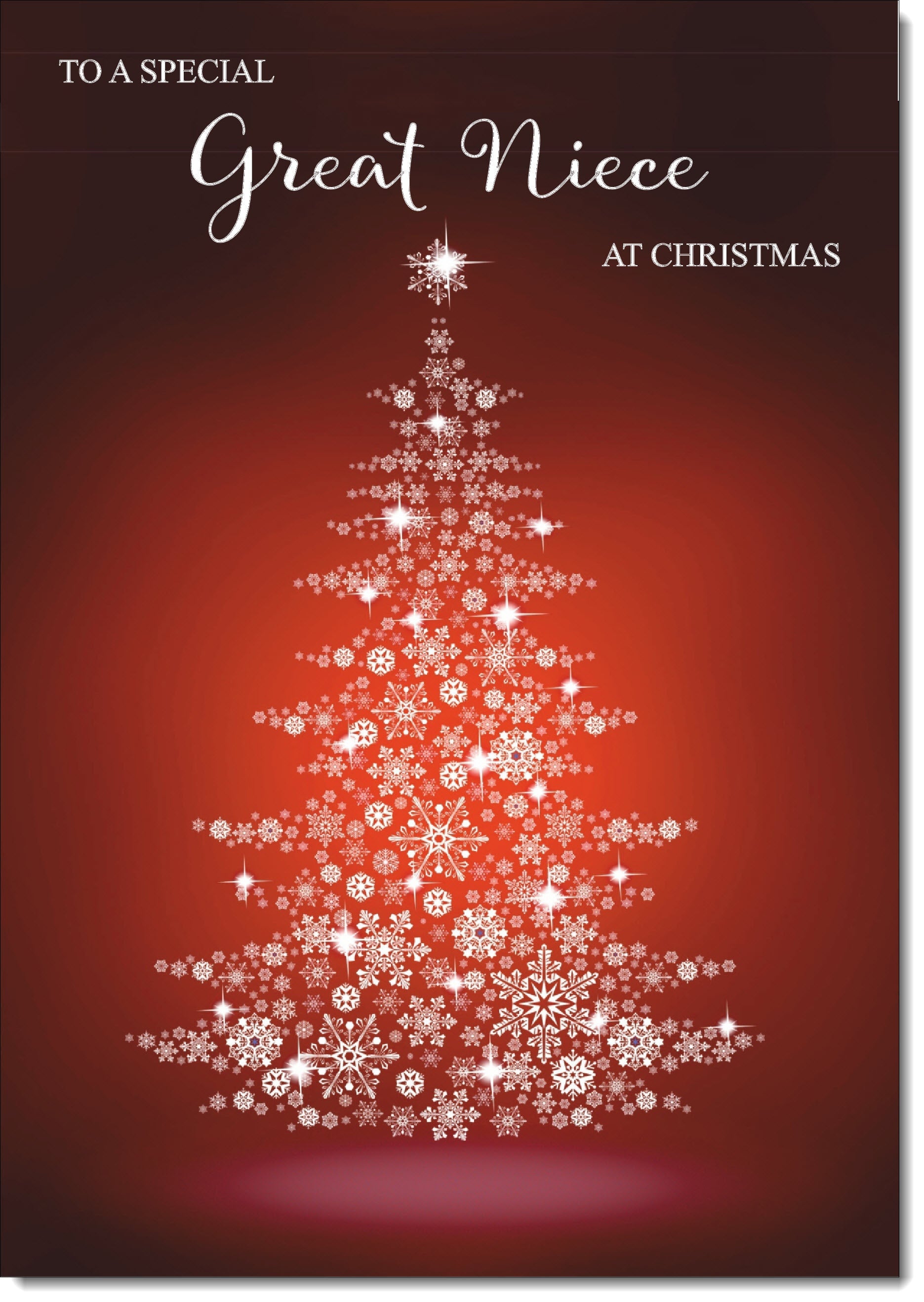Great Niece Christmas Card Red Snowflake Christmas Tree