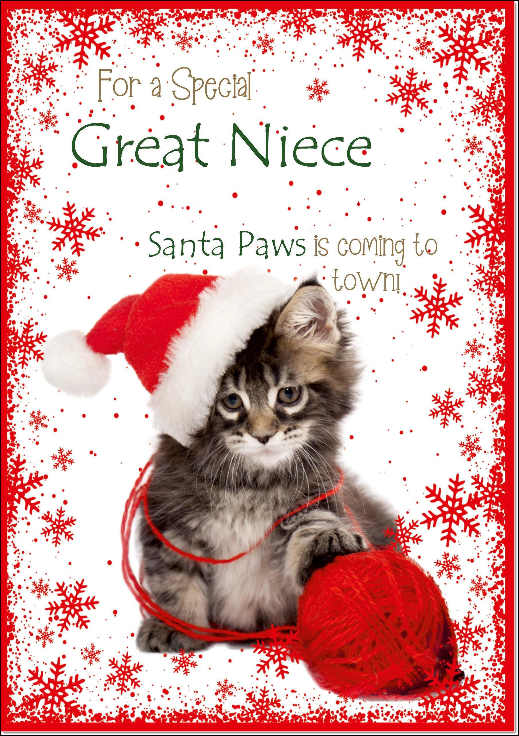 Great Niece Christmas Card Cute Santa Paws Kitten Cat Pet