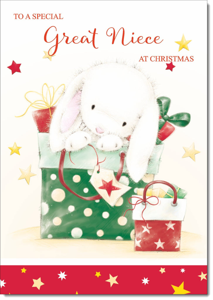 Great Niece Christmas Card Cute Rabbit with Parcels